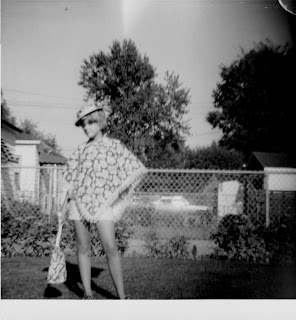 Vivid is the memory of that summer day when I modeled the poncho, hat and matching drawstring bag my mom had crafted for me.
